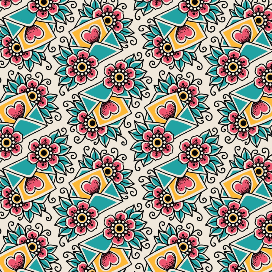 ✂️ Stampa con lettere e fiori stile tattoo old school su sfondo bianco